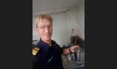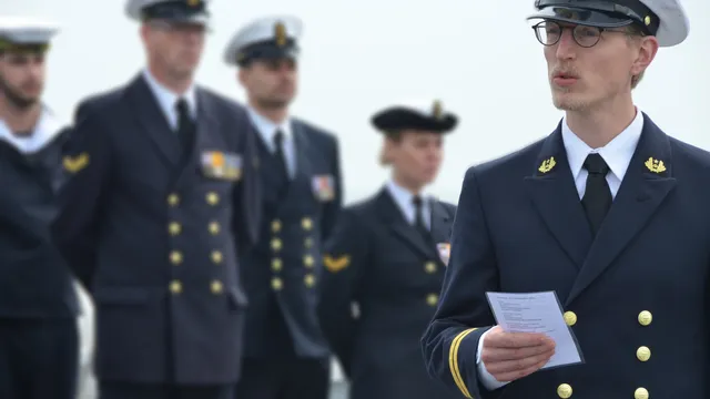 Tobias Karsten tijdens een viering over Kerst op zee.
