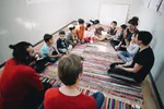 "De helft van de kinderen is Syrisch en de andere helft komt uit Afghanistan of Afrika. Er zitten Koerden, christenen, moslims en joden bij en dat is in het begin soms moeilijk. Dan wil een nieuw kindje bijvoorbeeld alleen maar naast een andere Koerd zitten. Wij mixen iedereen door elkaar en je merkt dat ze na twee weken samenwerken allemaal vrienden worden met elkaar, of ze nu joods zijn of moslim. Dat is mooi om te zien."