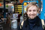 "Mijn naam is Micha Woutersen. Ik werk bij het bankjescollectief, het grootste openluchtcafé ter wereld. We stimuleren mensen om het bankje in hun straat te gebruiken als ontmoetingsplek. Online meld je je aan zodat iedereen kan zien waar er iets gebeurt. Wel raden we aan om persoonlijk je vrienden en buren uit te nodigen. Je kunt een kopje koffie serveren, salsa dansen of wat dan ook. Als deelnemer kun je bankjeshoppen, bij meerdere activiteiten op een dag. Alle bankjes overal ter wereld vormen zo één groot café, en we groeien enorm.