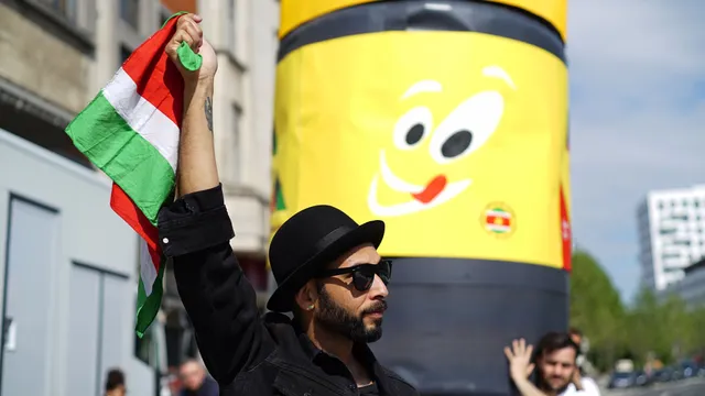 Raul Balai in Antwerpen voor een sokkel waar ooit een standbeeld van Leopold stond.
