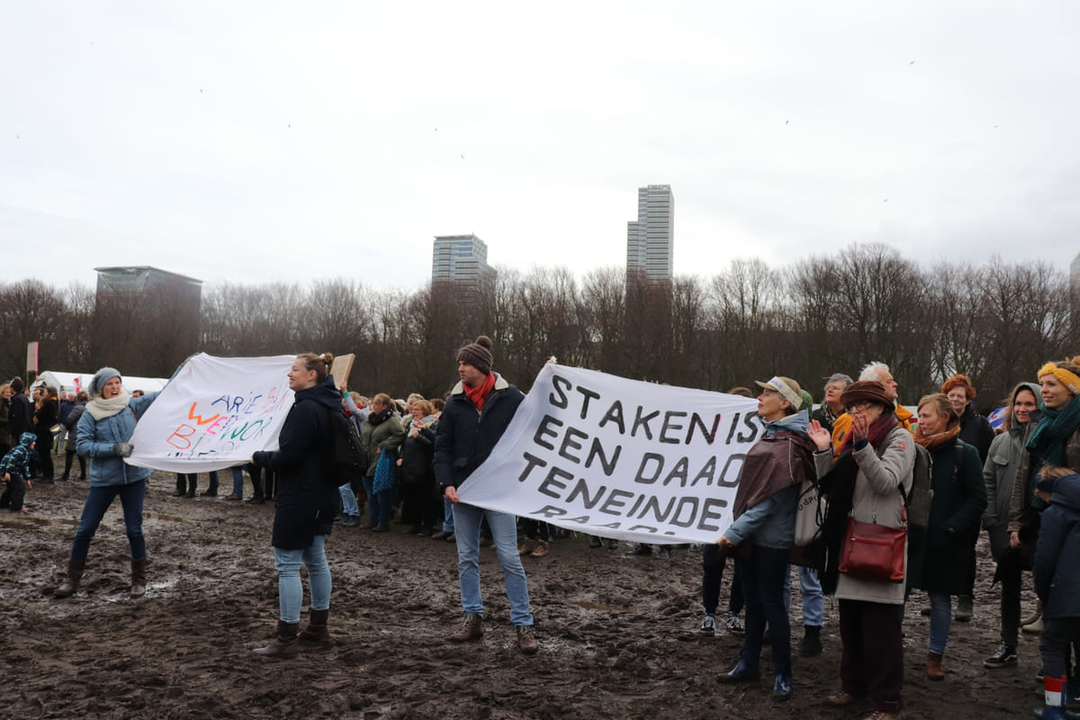 'We komen uit Groningen. Maar we willen hier bij zijn, want het gaat over de toekomst. Niet iedereen deelt onze mening, of zien niet de noodzaak. Daarom zijn wij juist wel gekomen om een tegengeluid te geven.'