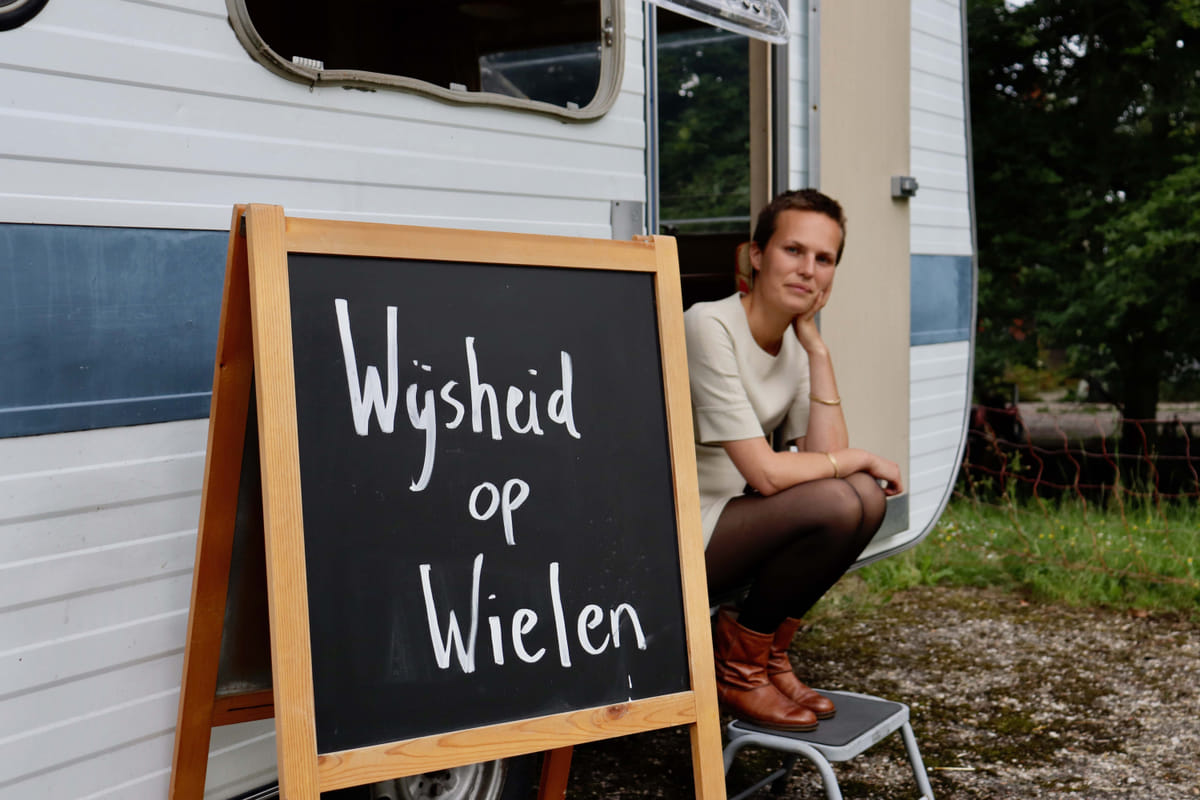 ‘Dus met die caravan wil ik ook een beetje het imago van een filosofische praktijk laagdrempeliger en toegankelijker maken. En ook het leuke ervan laten zien. Een gesprek hoeft niet zwaarmoedig en ingewikkeld te zijn, en alleen maar over vervelende dingen te gaan. Het kan juist ook heel leuk zijn.’