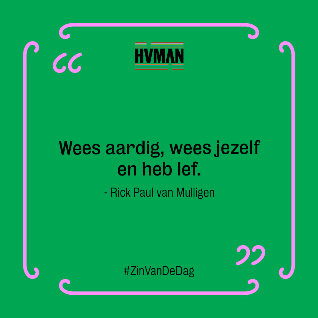 Wees aardig, wees jezelf en heb lef. Dat is het motto van Rick Paul van Mulligen, acteur, presentator en cabaretier. Dit motto bedacht hij samen met zijn man, vlak voor hun eerste zoon werd geboren. Voor onze podcast Zin van de Dag spreken we Rick Paul over dit motto.