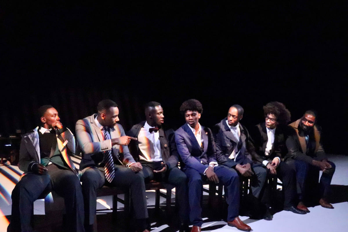 De zaal, waarin het publiek langzaam naar binnen stroomt, is een rechtszaal. We kijken naar de veroordeling van een groep onschuldige, zwarte mannen.
