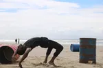 Een handjevol olievaten ligt verloren op het strand. De wind blaast de zilte lucht van de zee het strand op en prikkelt de neusgaten. Een dagje strand bestaat niet zonder die bekende geur van algen, plankton en slijkgras. De zon spiekt af en toe door het witte wolkendek en verlicht het strand.