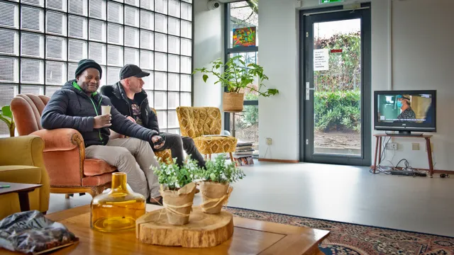 Coen Verbraak vanuit dak- en thuislozenopvang Springplank in Eindhoven in gesprek met kandidaten, begeleiders en de wethouder over het reilen en zeilen op deze plek.
