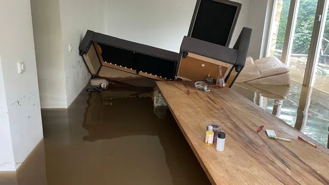 Woensdagavond 14 juli 2021, in de lunchroom van Paulien van Ogtrop en haar man, in het centrum van Valkenburg, pal naast de rivier de Geul, staat het water inmiddels anderhalve meter hoog. Van Ogtrop: "Toen 's avonds de Geul overliep, kwam het water hier als eerst over de brug. We waren de eerst getroffenen."