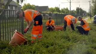 In fluorescerende, oranje pakken kruipen ze op hun knieën door het groen. Ze zijn fysiek of mentaal niet voor honderd procent inzetbaar op de arbeidsmarkt en ook voor henzelf is het code oranje.