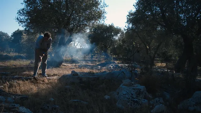 "Sorry, maar als ik een tak afzaag, zoals ik net gedaan heb, lijkt het alsof ik mijn eigen arm afzaag,” zegt een olijfboer tegen Cattini. “Bomen zijn mijn eten, ze zijn mijn leven.”