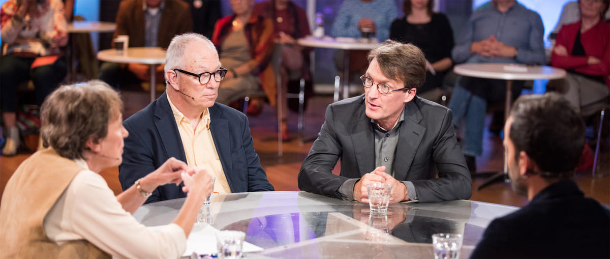 De standpunten aan tafel lopen enigszins uiteen, en dat is de basis voor een spannend gesprek onder leiding van Clairy Polak.