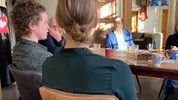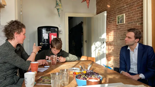 De staatsecretaris stelt oprechte vragen: hoe is de zorg voor Mees geregeld? Wat hebben jullie gemist in de zorg? Vragen niet alleen aan Louise, maar ook aan kinderen Liam en Roos.