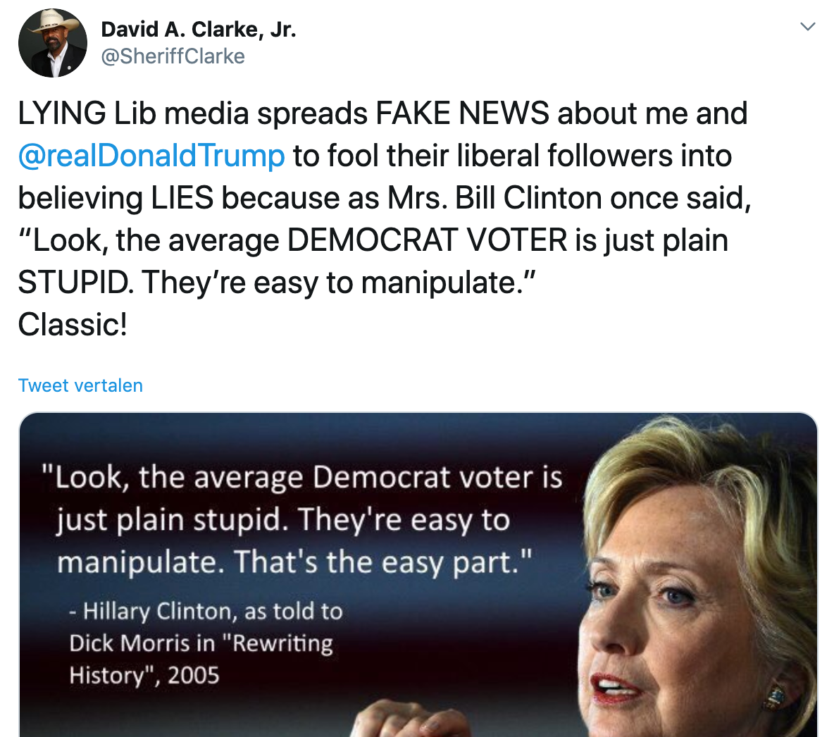 Zijn eerste tweet met nadrukkelijk de woorden ‘fake news’ plaatst hij in oktober 2014: