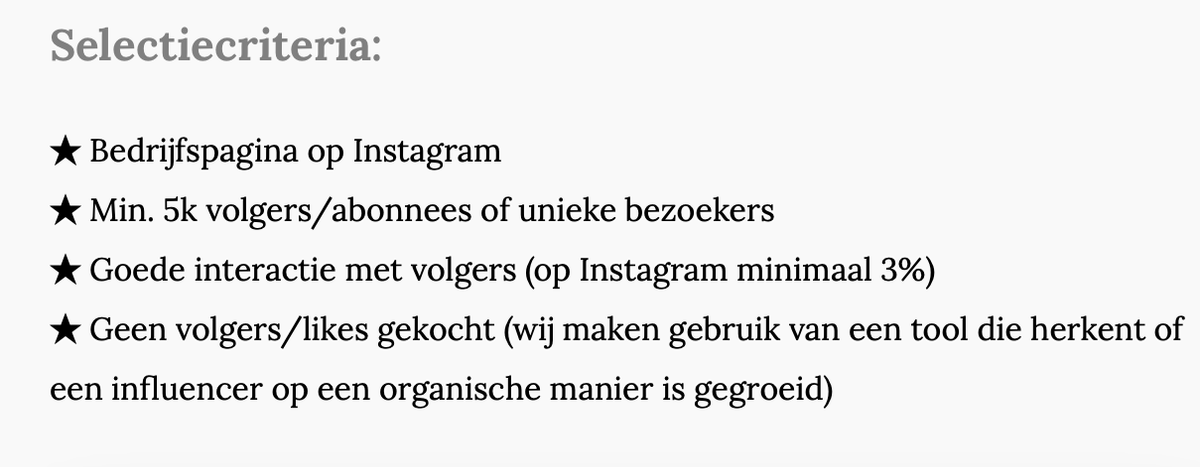 Een andere reden voor die hogere eisen is een zekere sociale controle onder influencers. Ze verzamelen zich in facebookgroepen waar marketeers en bedrijven oproepen kunnen doen voor een samenwerking. Een voorbeeld is de facebookgroep 'Bloggers, vloggers en Influencers NL' die een kleine 850 leden heeft. ‘Ik heb daar ooit een campagne geplaatst met een redelijk lage vergoeding. Toen kreeg ik allerlei reacties dat die vergoeding echt te laag was. Maar ook werden meiden die wel geïnteresseerd waren direct aangesproken dat ze dat niet moesten doen. Omdat ze dan de grens omlaag zouden halen.’