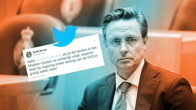 Universitair docent aan de Universiteit Leiden, Nadia Bouras ziet deze tweet voorbij komen en besluit te reageren. Het is inmiddels 9 juni. Bouras vindt het hypocriet dat de regering onder leiding van de VVD gretig zaken doet met het landen in het Midden-Oosten, terwijl zij ziet dat Han ten Broeke van de VVD die landen in het Midden-Oosten achterlijk noemt.