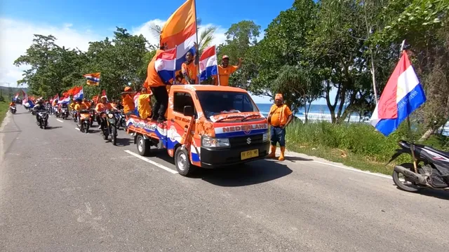 "Tijdens het WK vinden konvooien in heel Oostelijk Indonesië plaats. In deze periode mag je met vlaggen uit andere landen zwaaien, dus ook de Nederlandse vlag. Het is niet toegestaan om andere vlaggen dan die van voetballende landen te dragen. Soms loopt de ‘euforia bola’, ofwel de voetbaleuforie, hoog op. Maar de supportersvereniging heeft in Manokwari, de hoofdstad van West-Papoea, nauw contact met de lokale politie. Tot nu toe is dat altijd goed gegaan."