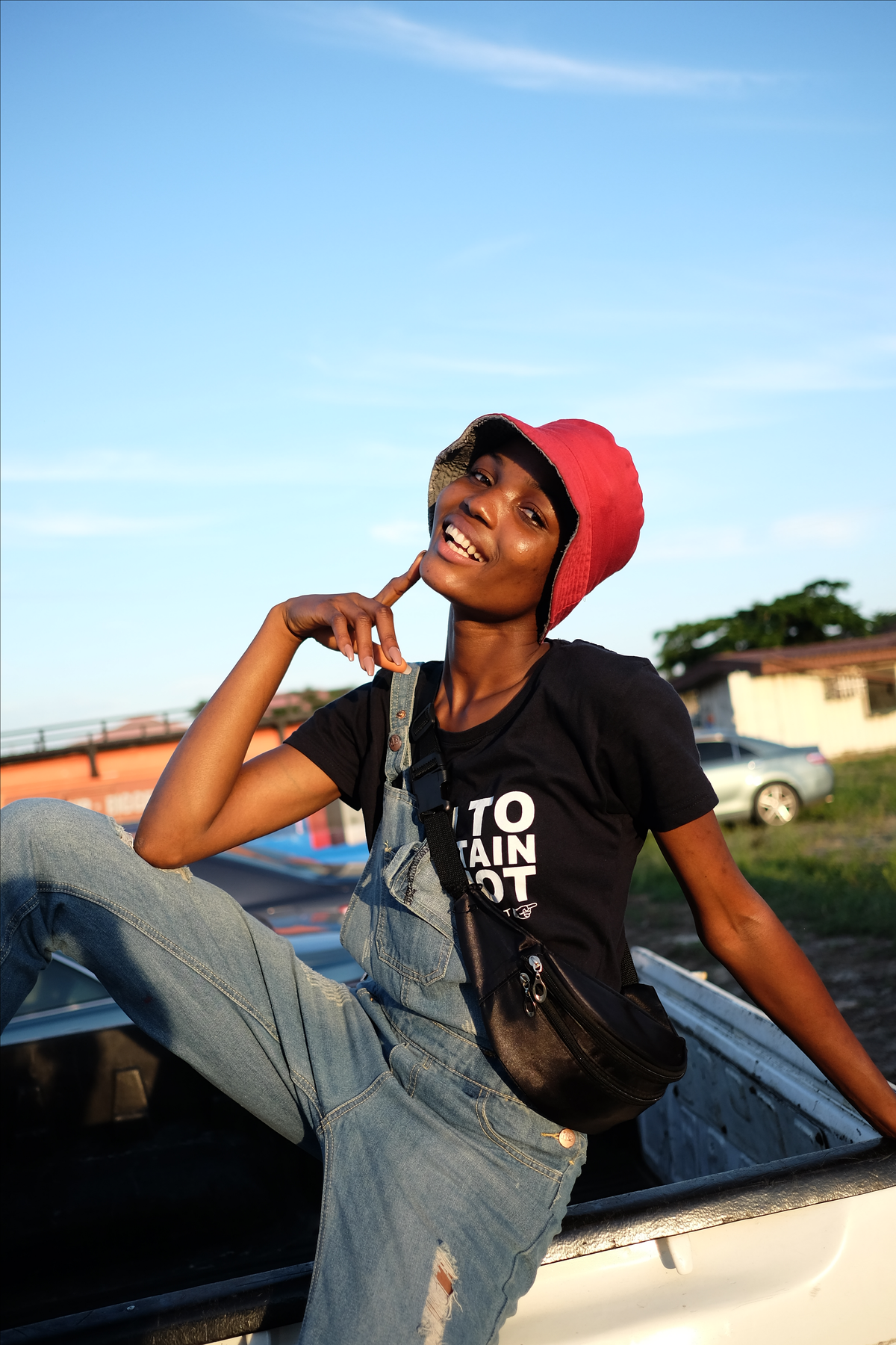 In Lagos doen ze niet aan after-parties maar aan pre-parties. Ik word uitgenodigd voor de pre-party van Bubu Ogisi, de dame achter het modemerk IamIsigo. Bubu staat bekend om haar artsy, rauwe en natuurlijke stijl. Haar studio is behangen met aluminiumfolie. Op het balkon raak ik aan de praat met Kofo, die bij het modemerk Waffles ‘n Cream werkt. “Heb je dit gezien, weet jij wie dit is?”, vraagt ze, terwijl ze me een filmpje laat zien van de bekende Britse fashion journalist Suzy Menkes die ook in Lagos is en een Waffles ‘n Cream pak aan heeft. Een geel pak met patronen erop en grote afdrukken van Jezus. In het filmpje grapt ze dat ze “Jezus tussen haar benen heeft”. Ironische, droge Britse humor en ontzettend goede publiciteit voor Waffles ’n Cream. Kofo en ik moeten erom lachen.