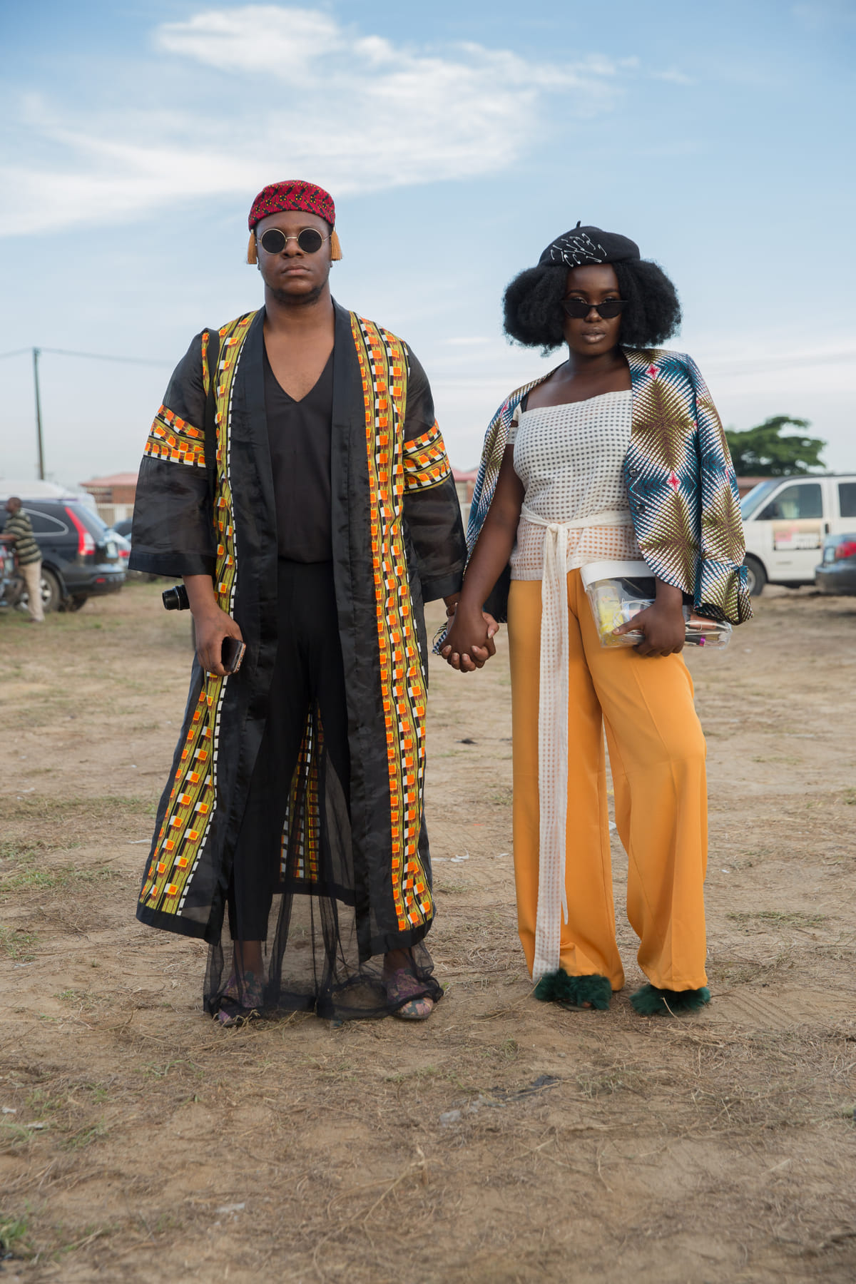 Buiten spreek ik een paar bezoekers die ook op tijd zijn. Ekow Barnes is speciaal uit Accra overgevlogen voor deze modeweek. Hij is zelf model en pendelt tussen Accra en Kaapstad. “Ik ben hier om vrienden te steunen, om de laatste mode te zien en om te netwerken”. Edwin Okolo, managing editor bij de September Standards, komt voor een specifieke designer: “Ik ben speciaal gekomen voor het modemerk Maxivive. Zij maken altijd interessant werk dat het gesprek over gender weet aan te wakkeren.” Ook de Nigeriaanse straatstijl fotograaf Stephen Tayo is er al. Hij is bezoekers aan het fotograferen voor Vogue en voor GQ Magazine. Ook ik mag op de foto. Hij kijkt het meeste uit naar de randprogrammering: “De feestjes zijn altijd het beste onderdeel. Wij in Lagos kunnen feesten als geen ander!”