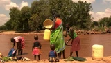 De 19-jarige mama Kusikei uit Kacheliba, Kenia gebruikt een mix koeienpoep en aarde om haar huis te bepleisteren. Geen wonder dat ze zich graag grondig wast na een dag werken aan haar huis. Dat doet ze in de Suam-rivier, net als de rest van het dorp.
