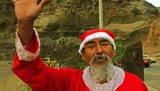 Kerstman spelen is bepaald geen vetpot in Peru. Om geld te verdienen springt deze man bij wijze van een kunstje van een rots in zee. Tijdens de feestdagen trekt hij daarvoor zelfs speciaal zijn kerstmanpak aan.