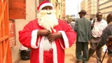 Het kostte de Keniaanse Benjamin wat moeite om zo'n goed gevormd lichaam te krijgen, maar nu past hij eindelijk in zijn grote kerstmanpak. Daarin prijst hij de waren aan van supermarkt Ukwala in Nairobi en deelt daarbij vrijgevig snoepjes uit aan (uitsluitend!) betalende klanten.