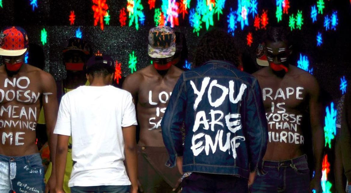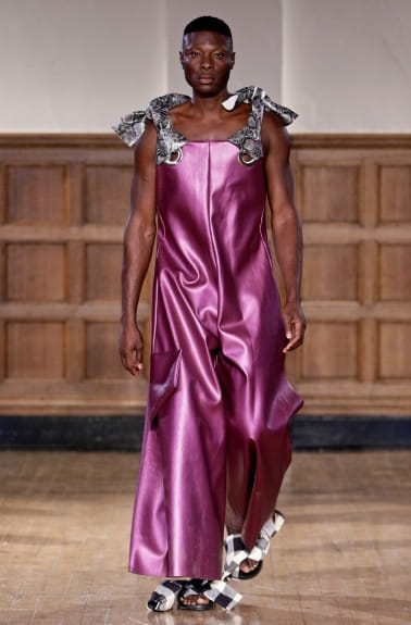 Niet vies van een politiek tintje? Kijk dan uit naar de op #MeToo geïnspireerde teksten van de Zuid-Afrikaanse ontwerpers Didier de Villiers en Mothei Komiso. “Rape is worse than murder” en “Love is safe” staat met witte verf op de lichamen van hun mannelijke modellen geschreven. Met hun fashionable bomberjacks en lange jassen paraderen ze zelfverzekerd over de catwalk. Hiermee willen de ontwerpers een geluid tegen verkrachtiging laten horen en een eerbetoon aan vrouwen brengen.