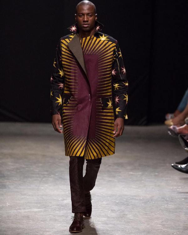Zo laat de Nigeriaanse ontwerper Tsemaye Binitie het Nigeriaanse erfgoed terugkomen in zijn keuzes voor textiel. Hij maakt vaak gebruik van de aso-oke uit Nigeria, een handgeweven stof dat voorheen door de Nigeriaanse Yoruba-stam werd gemaakt en gedragen tijdens rituele ceremonies. De stof wordt normaal gesproken gebruikt voor hoofddeksels, Binitie gebruikt het juist als stof voor rokken en jurken (zie foto hierboven).