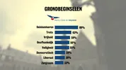 Waar bij andere partijen de term 'democratisch' steevast hoog scoort, blijft dit grondbeginsel achter bij de PVV. Slechts negenendertig procent van alle kiezers ziet de PVV als een democratische partij.