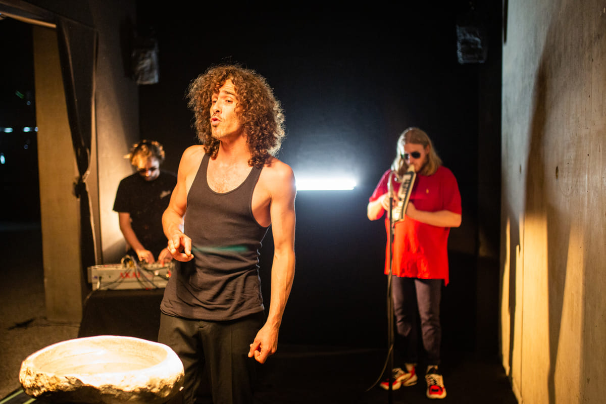 Laatstgenoemde is bij het gedicht "Nieuw Normaal" te zien blazend op zijn melodica over een dub van Pushinwood Soundsystem.