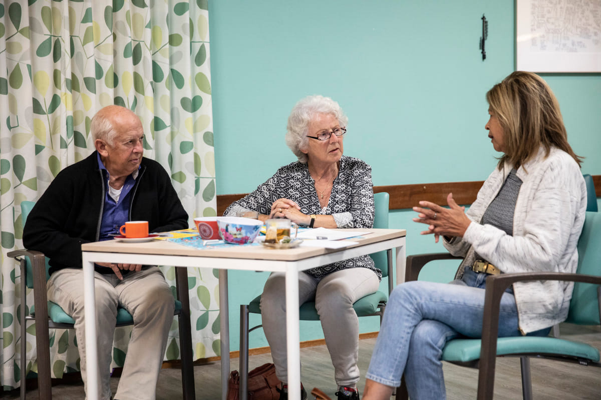 Het is tien voor zeven, tien minuten voordat de eerste gasten komen. In ‘De Oase’, het wijkcentrum van IJsselstein, worden nog snel de laatste voorbereidingen getroffen. De koffie staat klaar, en de tafeltjes staan gereed. Keurig op anderhalve meter afstand van elkaar. Ze zijn er klaar voor: de eerste editie van het Alzheimer Café in bijna vier maanden sinds de coronacrisis.