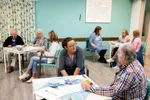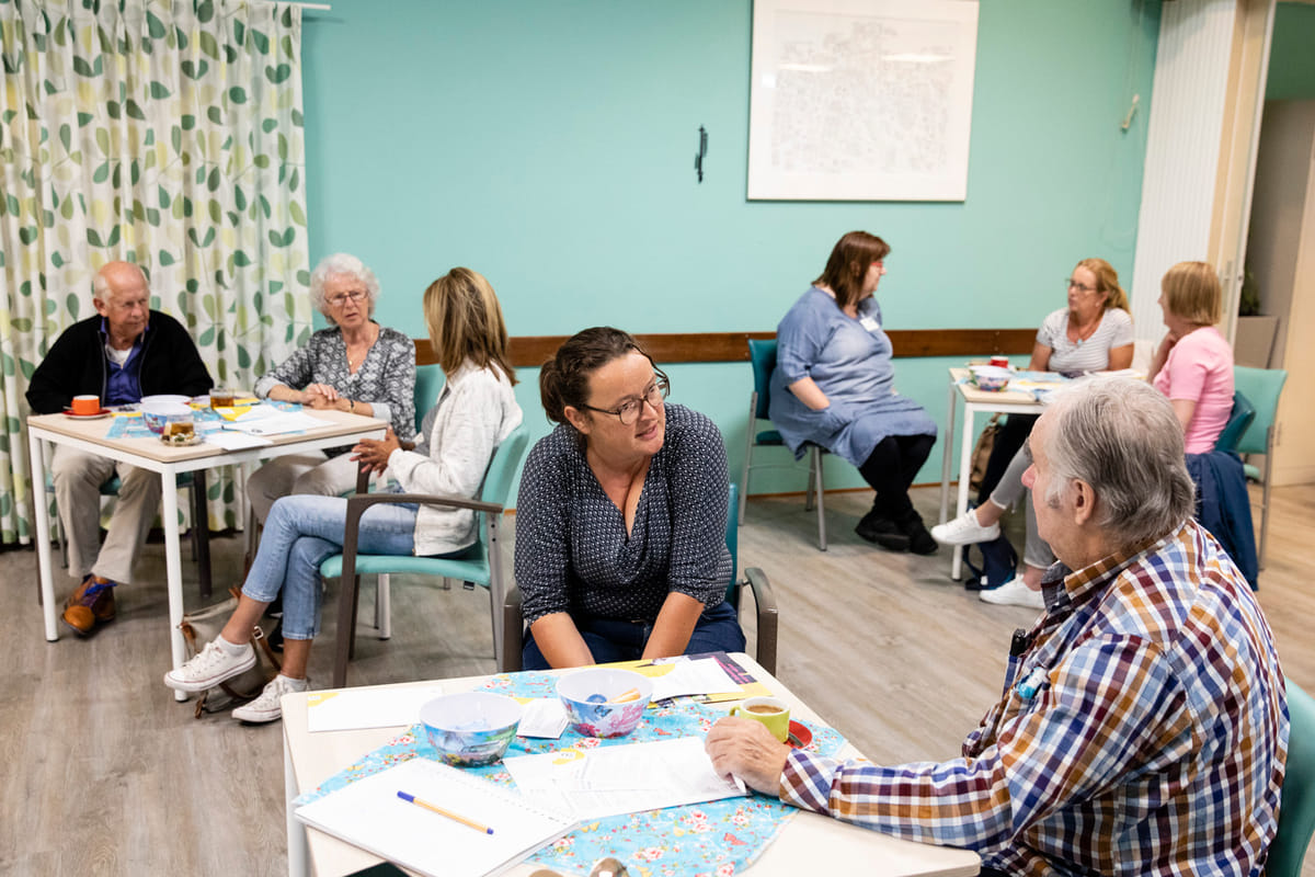Het is even over half acht als het geroezemoes van de circa twintig deelnemers wordt onderbroken door de introductie van Willeke Blom die de avond faciliteert. Aan bijna elke tafel worden deelnemers vergezeld door een hulpverlener, casemanager, of iemand van de dagbesteding.