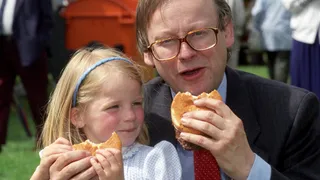 Voormalig minister John Gummer geeft zijn dochter dochter een hap van zijn rundvleesburger met de gekkekoeienziekte en de Japanse premier Fumio Kishida eet vis uit behandeld radioactief water. Daarmee scharen zij zich in het rijtje politici dat voor de camera eet of drinkt om de publieke opinie te beïnvloeden.