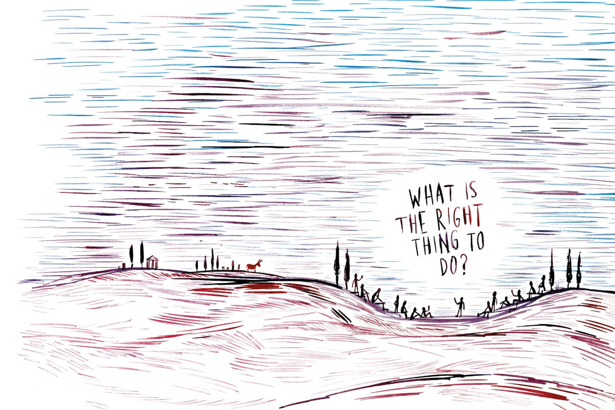 Het broeit en zindert in het oude amfitheater van Oropos, zo’n drie kwartier rijden van Athene. Niet omdat het snikheet is (dat ook), maar omdat er net een stevige discussie is gevoerd over het onderwerp discriminatie. Voor de nieuwe vijfdelige debatserie What’s the Right Thing to Do? van Human debatteren namelijk 21 mensen tussen de twintig en de veertig in het oude Griekenland over gevoelige en prangende maatschappelijke kwesties.